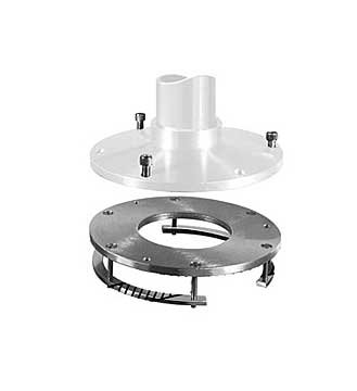 DETACHABLE STANCHION PLATE is ring type. Sandwiches deck for positive reinforced installation. Allows base and seat to be removed from mounted position. Anodized aluminum 9" diameter, 3/8" thick complete with ring, three stainless steel cap screws, allen wrench and two backing brackets. Adapts to all model bases.